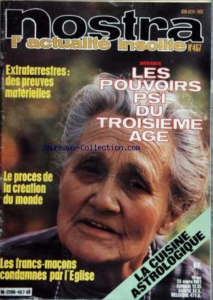 Read NOSTRA [No 467] du 19/03/1981 - extraterrestres - des preuves materelles - le proces de la creation du monde - les pouvoirs psy du 3eme age - les francs-macons condamnes par l'eglise - la cuisine astrologique PDF